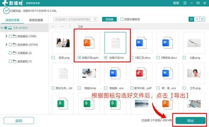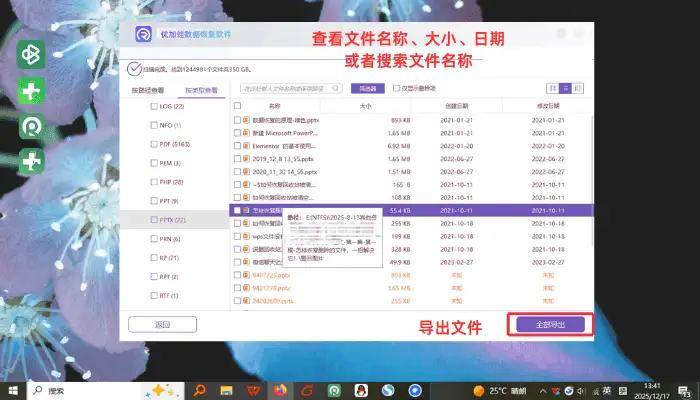 步骤3.扫描过程结束后,在结果呈现页面依据文件类型进行筛选,找到所需文件后,将其导出至安全存储区域。