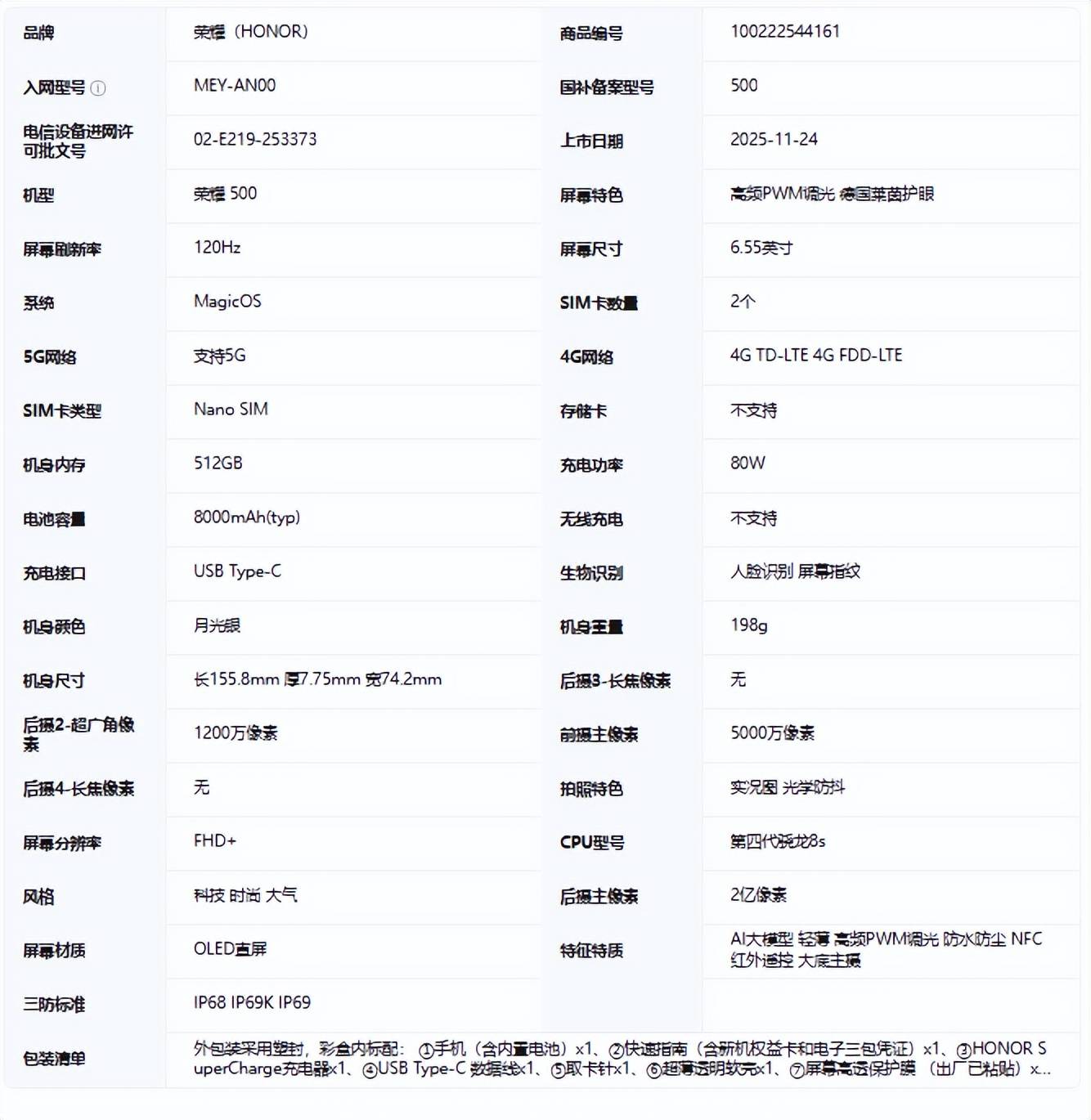 第四款:荣耀500——2000档全能王,华为畅享70 Pro被碾压