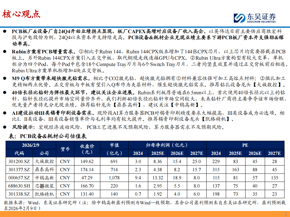 今天分享的是:2026年PCB设备站在业绩兑现的前夕,关注方案升级与新技术的增量空间