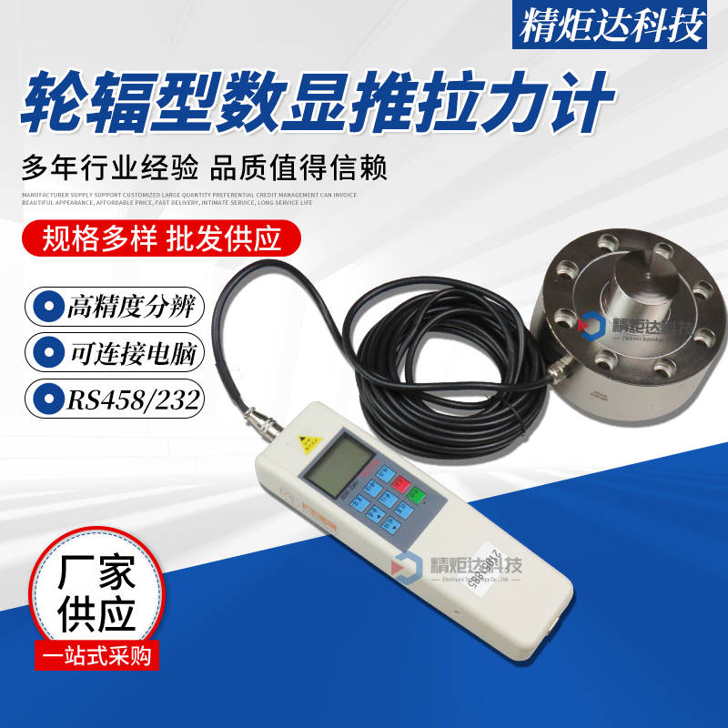 成都精炬达电子科技有限公司生产的这款JD-LF型1-10T轮辐式数显拉压力计是一种高精度测量仪器,广泛应用于工业制造、科研实验、质量检测等领域,可对物体的拉力和压力进行精确测量。该仪器采用轮辐式传感器结构,结合数字显示技术,具有测量范围广(1T至10T)、精度高、操作简便等特点,能够满足不同场景下的拉压力测试需求。