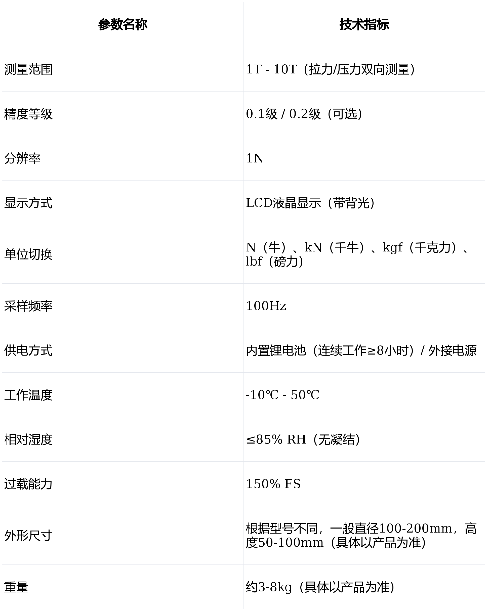 - 轮辐式传感器:核心部件,采用高强度合金材料制造,具有抗偏载能力强、刚度大、测量精度高等优点,可同时承受拉力和压力。