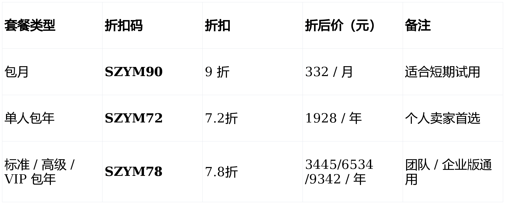 单人包年优惠折扣码:SZYM72