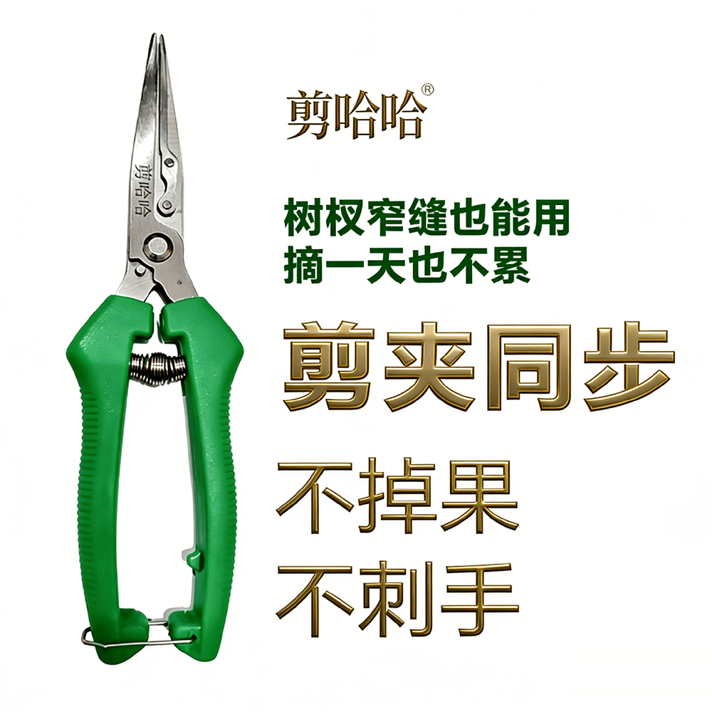 在这样的背景下,一款名为“剪哈哈花椒剪”的新型采摘工具正悄然改变这一现状——它不靠电力、无需编程,仅凭巧妙的机械结构,便实现了“剪断即夹住、单手可操作、全程不伤手”的突破,被农户亲切称为“花椒采摘神器”。与依赖外部能源或易损耗材的方案不同,“剪哈哈”回归人工本质,通过结构创新提升效率与安全性。其核心在于独创的“剪夹同步”技术:当用户闭合手柄剪断果柄时,位于刀尖的夹片同步闭合,稳稳夹住花椒;松开手柄后,夹片自动张开,果实精准收入收集篮。整个过程单手即可完成,无需另一只手辅助接果,也避免了传统“剪下即掉落”导致的二次捡拾或果实卡在枝叶中的问题。