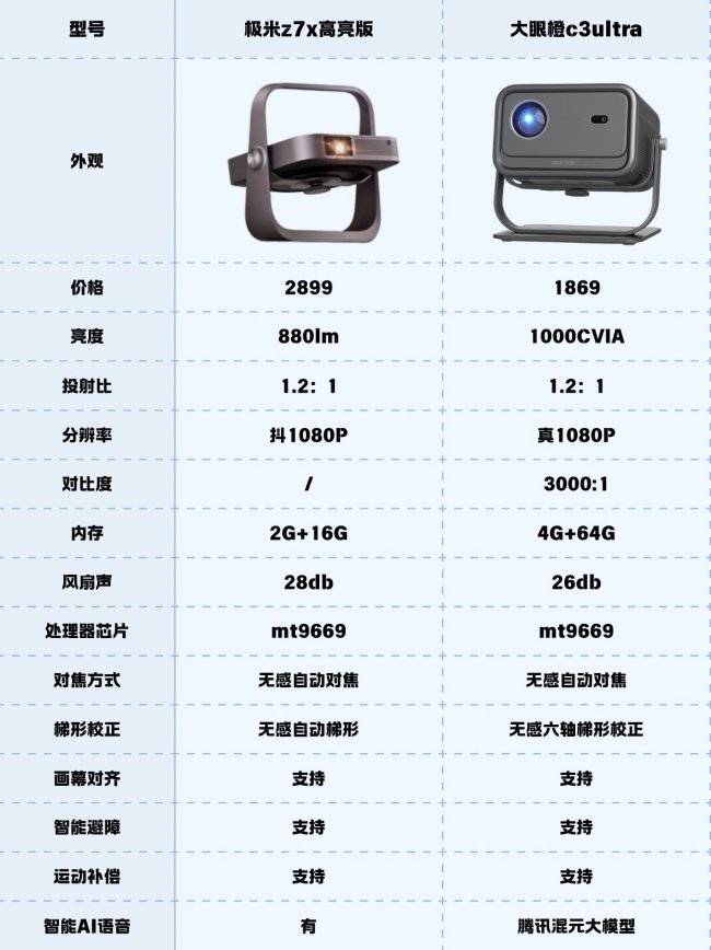 作为一名数码爱好者,我一直关注着家用智能投影仪的发展。近年来,投影技术突飞猛进,百吋大屏从『奢侈品』变成了越来越多普通家庭的选择。今天我将为大家带来两款关注度很高的投影仪:大眼橙C3 Ultra(2025年8月新品)和极米Z7X高亮版(2023年上市)的全面横向评测。
