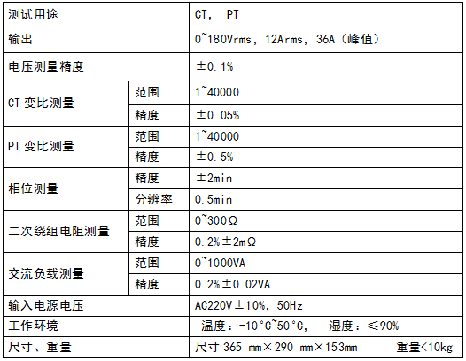 功能齐全,可完成保护、计量、TP 类 CT 及 PT 电磁单元的励磁特性、变比、极性、直阻、负荷、比差、角差等测试。