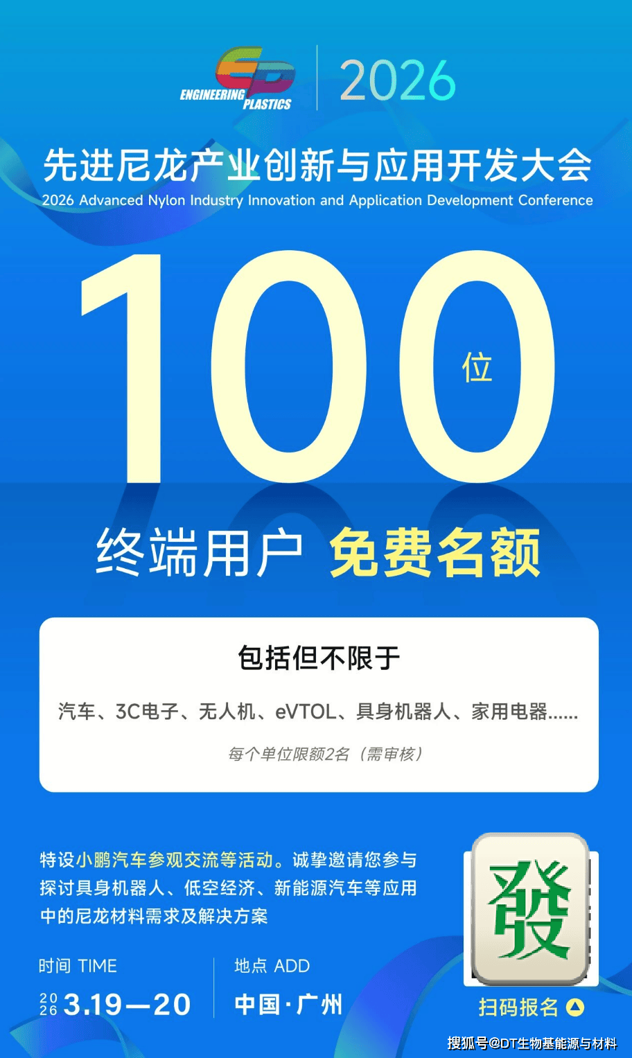 会议聚焦尼龙产业技术创新、应用开发、降本增效、市场开拓的难点和策略,特设小鹏汽车参观交流、团标制定等特色活动,重点拓展具身『机器人』️、低空飞行器、『新能源』汽车等新兴产业的应用落地路径。大会将汇聚产业链上下游国内外领军企业、权威专家与核心终端用户,共探产业高质量发展之道。