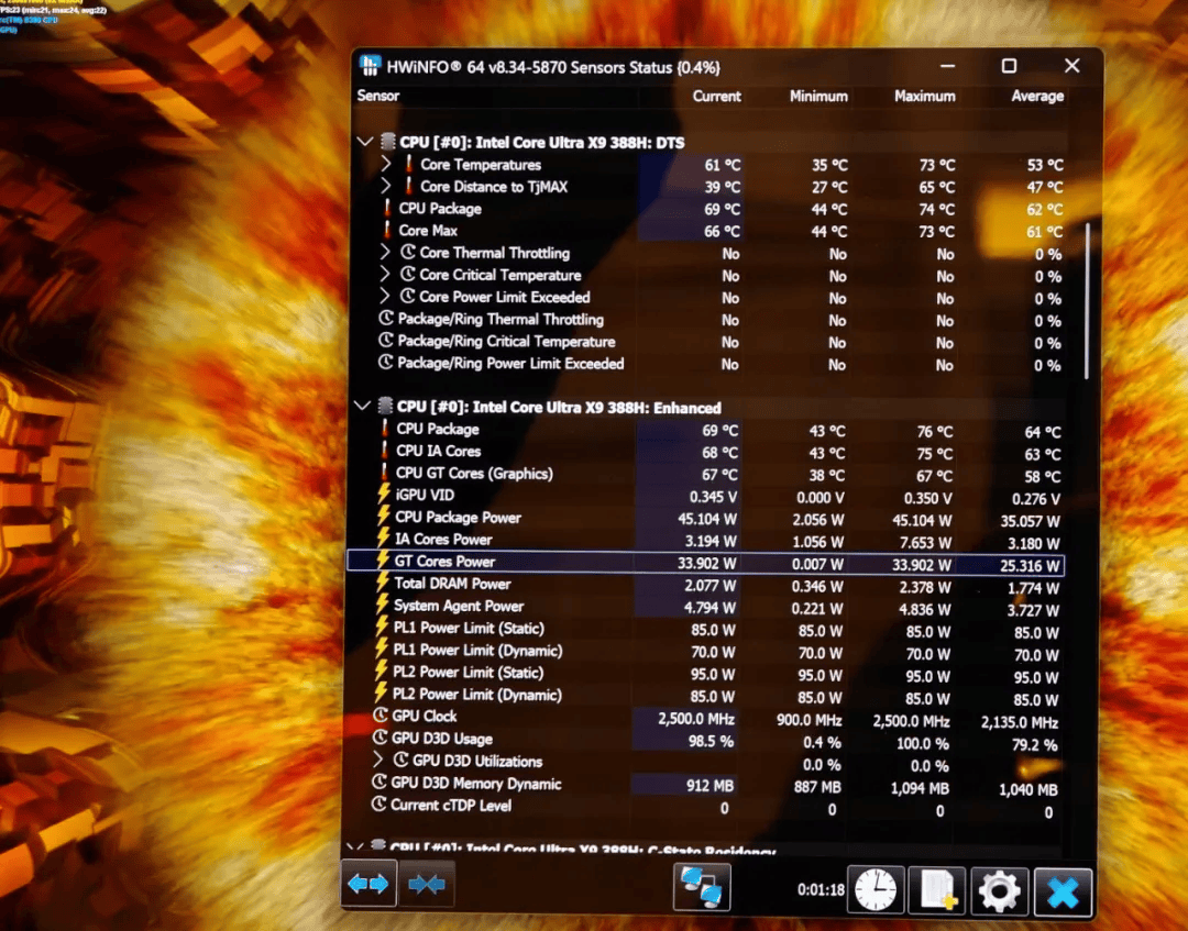 第三代酷睿Ultra最大的优势在于它用上了英特尔18A先进制程,而且在“Chiplet”设计上玩出了花。它实现了CPU性能比上一代提升60%,但更厉害的是功耗控制——日常低负载时,它甚至能叫板甚至超越被称为“x86能效传奇”的上一代Ultra 200V系列,以前“高性能必然短续航”的铁律被打破了。现在的笔记本📓,既能文(超长续航),又能武(性能炸裂),尤其是那个全新Xe3架构的锐炫B390核显,实测数据告诉我们:轻薄本真的可以畅玩3A大作了。