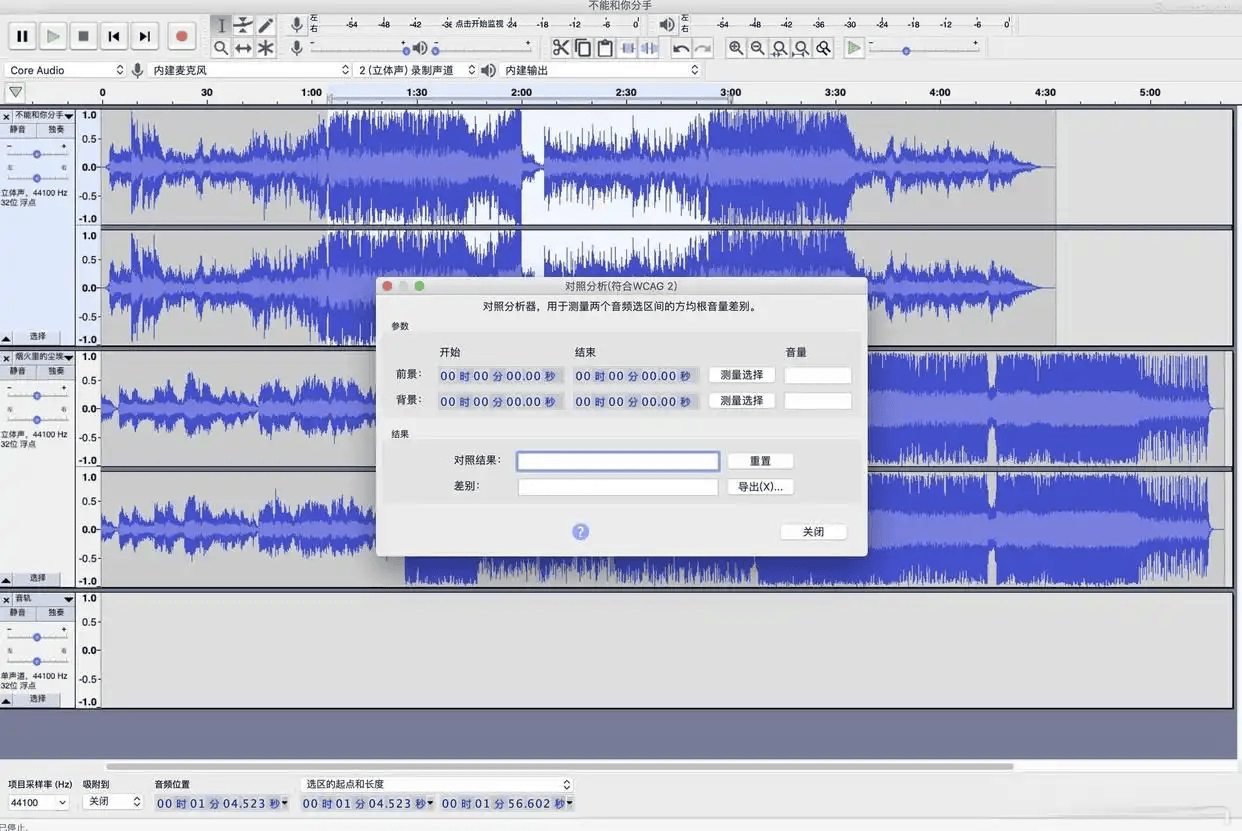 1、下载安装 Audacity,并确保安装了 FFmpeg 库(用于支持 m4a 导入)。将 .m4a 文件拖入软件主界面。如果需要剪辑,利用时间轴工具删除杂音或无关片段。