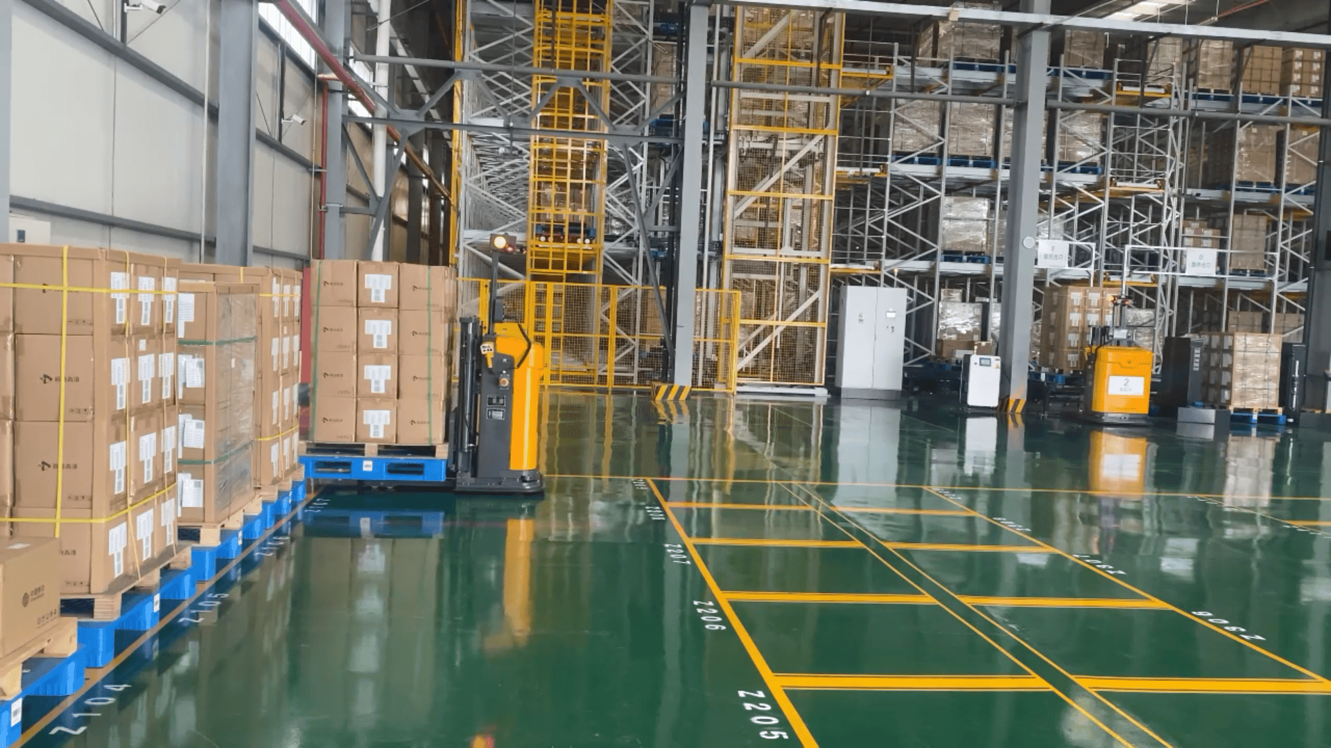 在收货区、仓储区和发货区之间自动搬运托盘货物。
