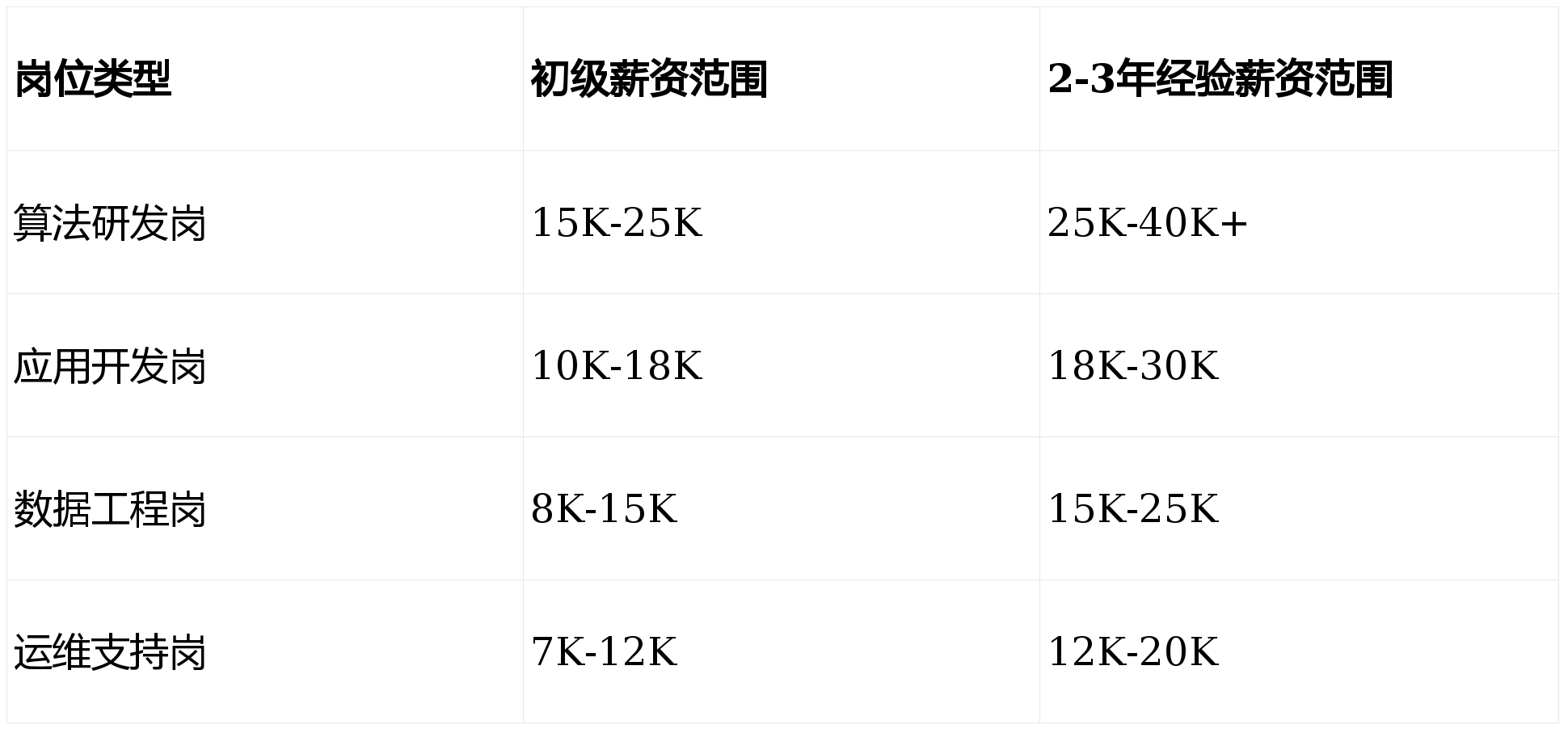 从薪资水平看,不同岗位也有明显差异(以下为月薪范围):