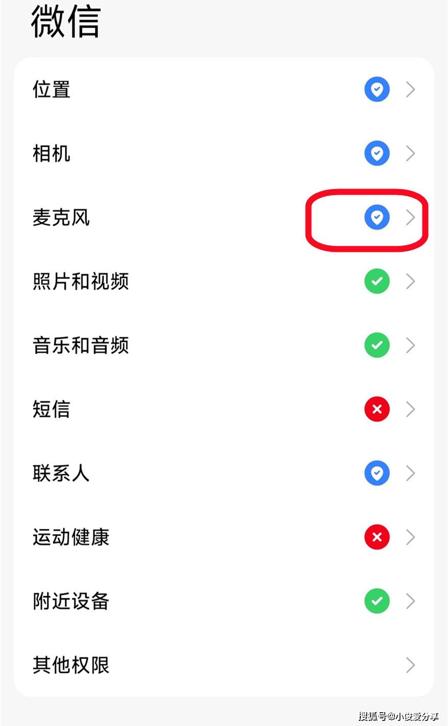 所以啊,咱们一定要定期去手机里面检查一下,保留一些常用的麦克风权限就可以了,比如微信,电话,输入法等等,这些是必须使用麦克风权限的,咱们就把它打开,像其他一些莫名其妙的小程序,软件,咱们一律全部禁止!