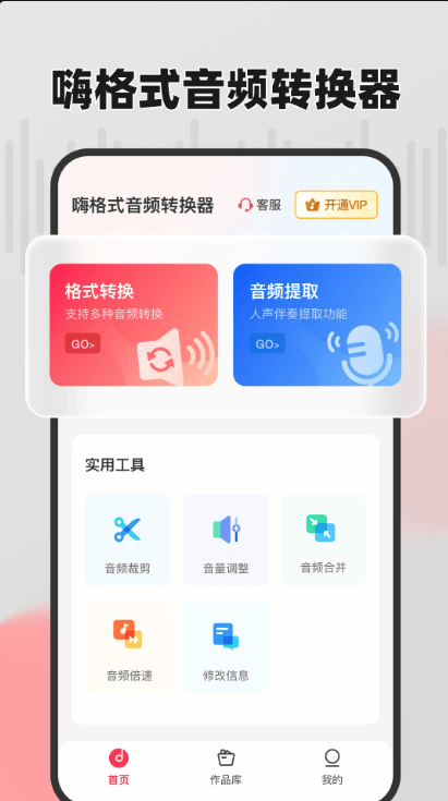 嗨格式音频转换器APP是一款多功能的音频处理工具,该软件产品内置了音频格式转换和音频裁剪的功能以及提供了专业的音频提取功能和支持单个或批量文件提取。