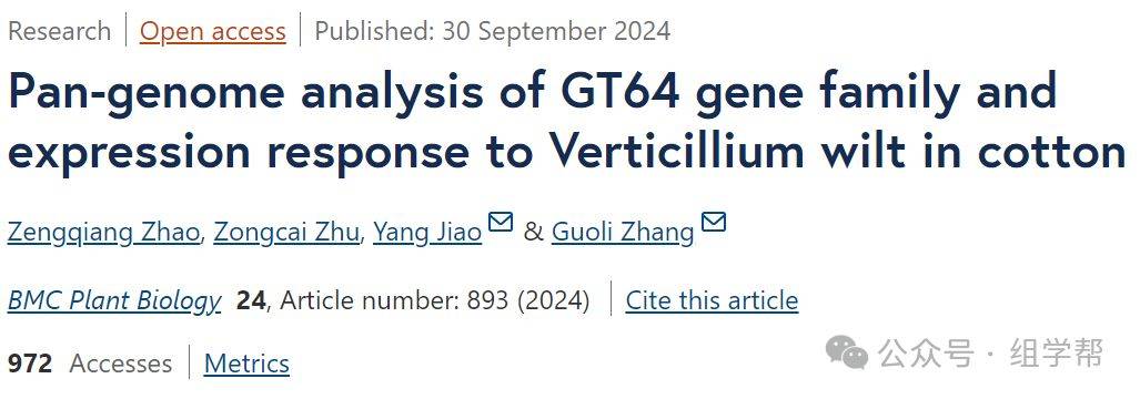 发表题目:Pan-genome analysis of GT64 gene family and expression response to Verticillium wilt in cotton