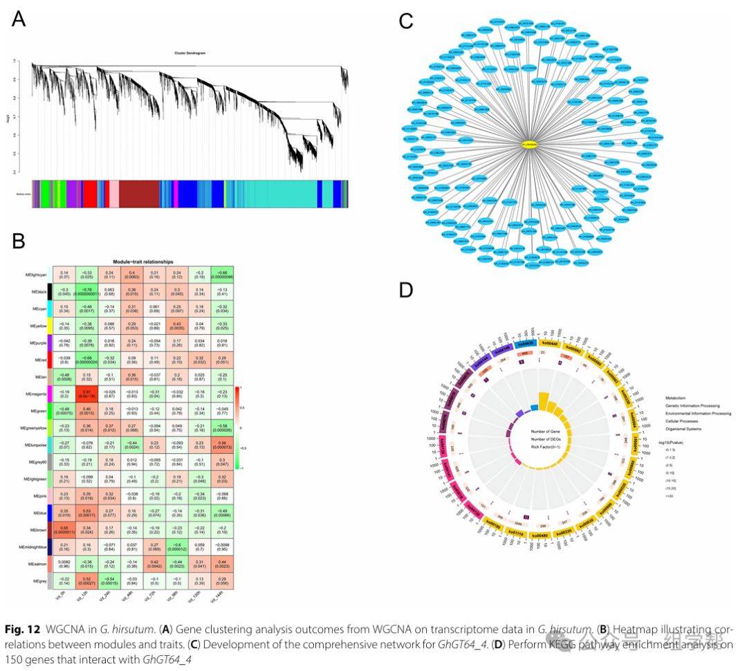 图12:陆地棉中的加权基因共表达网络分析(WGCNA)