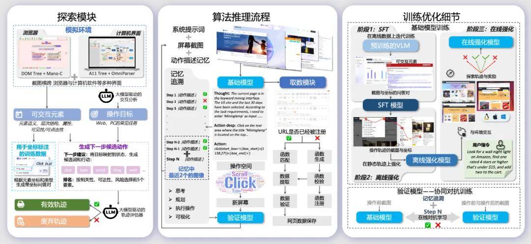 更关键的是,通过持续强化学习, Mano 能自主适配全新的业务流程,且在 Mind2Web、OSWorld 两大全球权威基准测试中登顶,达到 SOTA 水平,从执行端彻底杜绝数据错误。