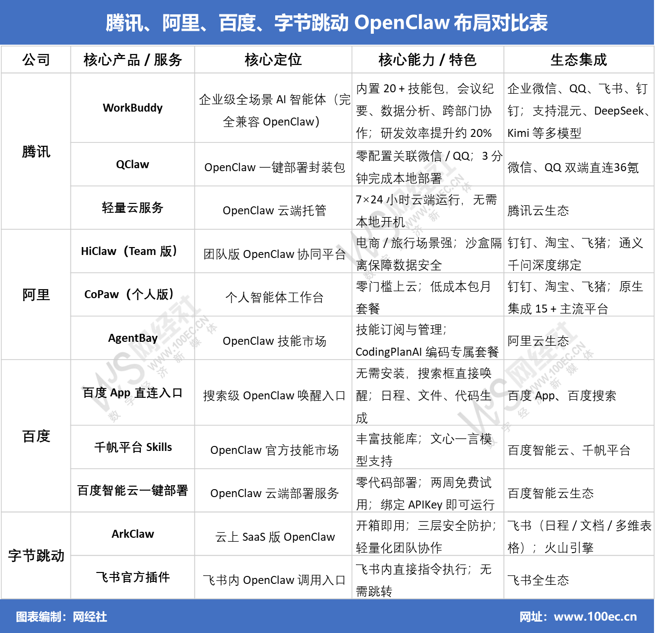 腾讯是布局最为迅速、最为全面的企业之一。3月10日,腾讯正式官宣发布全系基于OpenClaw生态的“龙虾”产品矩阵,涵盖个人级、开发者级、企业级三大维度。