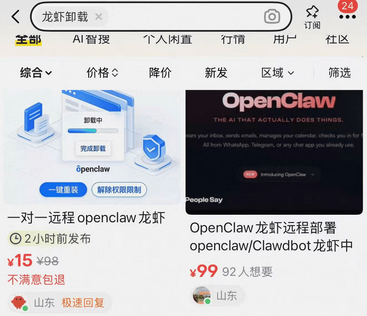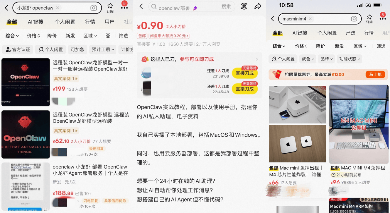 打开二手交易平台,搜索“OpenClaw”“养虾代部署”,相关的服务链接密密麻麻,价位从几十元到数百元不等,服务内容涵盖“远程安装”“本地部署”“API密钥配置”“技能包导入”等多个方面。其中,基础的远程安装服务标价多在50-100元,而包含云端部署、技能定制的全套服务,标价甚至超过500元。有闲鱼卖家透露,自OpenClaw爆火以来,自己每天能接到几十单订单,“下单需要排队30分钟以上”,仅3天时间成交额就突破3000元,不少『互联网』程序员利用下班时间接单,日均收入可达500元以上,部分专业的技术团队,甚至专门推出了“OpenClaw部署套餐”,月收入轻松过万。