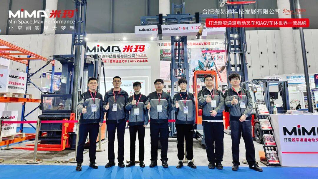 本次展会,合肥搬易通(MiMA米玛)展示多款『明星』️产品,包括MCC16人上型三向车、MC16站驾人下型三向车、MQC30宽体坐驾全向叉车、MK20X平衡重式叉车、MFZ20前移式叉车、MBV15平衡重式堆垛车AGV车体、MEV20S托盘搬运车AGV车体,MiMA展位人气爆棚,获得了众多参观者的关注。