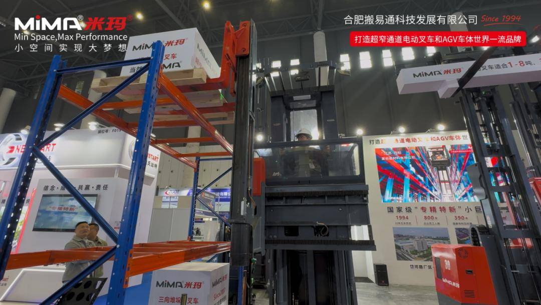 MiMA米玛窄巷道叉车凭借其针对高位仓储拣选、长物料搬运与纵深空间高效利用的专业设计,吸引了众多参观者的关注。该产品能够显著应对土地资源紧张、仓储布局受限、人力成本提升及作业安全风险等行业共性挑战,以其创新设计和实用价值,收获了现场专业人士的广泛好评。