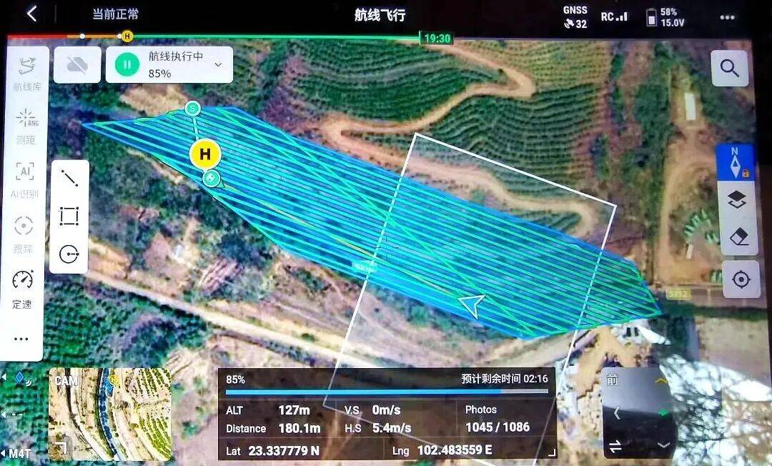 绿色线路为无人机测绘自动飞行航线