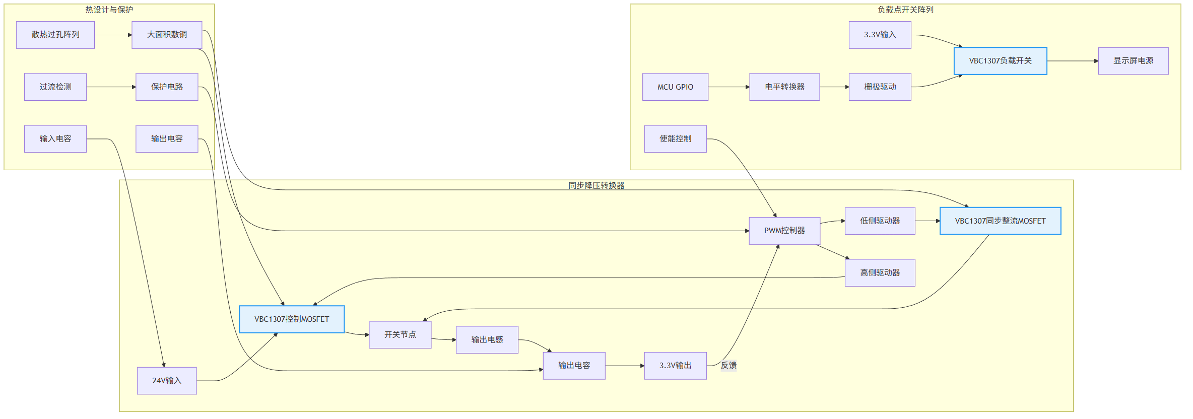 2. VBC1307:在电源管理区域提供≥80mm²的敷铜散热,保持空气流通即可满足温升要求。