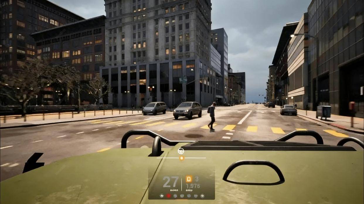 依托虚幻引擎5(UE5)的强大渲染能力,模拟器构建了高精度数字孪生城市场景,彻底打破传统模拟器场景单一、还原度低的短板。不同于普通仿真场景的粗糙呈现,该系统借助UE5的Nanite虚拟几何系统与Lumen动态全局光照技术,实现毫米级道路纹理还原,无论是路面标线、井盖细节,还是路边植被、楼宇轮廓,都与真实城市环境别无二致。