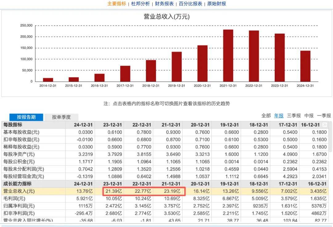 以火星人为例,2026年到2023年营收超过20亿元后,2024年迅速跌落到13.76亿元,净利润也从2026年的3.5亿元下跌到2024年的1115万元。