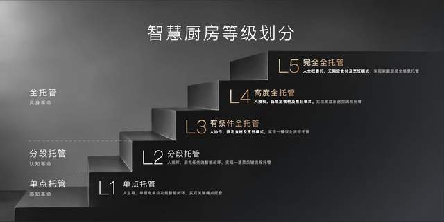 为将智慧厨房蓝图转化为可衡量、可践行的行业共识,本次大会上,方太发布首个《全球智慧厨房创新发展白皮书》,并构建了智慧厨房能力等级(L1-L5)划分。该分级首次为“智慧”建立了可衡量、可验证的评估体系,明确了从基础工具到全域生态的五个发展等级,为消费者提供选择依据,为行业树立发展路标。