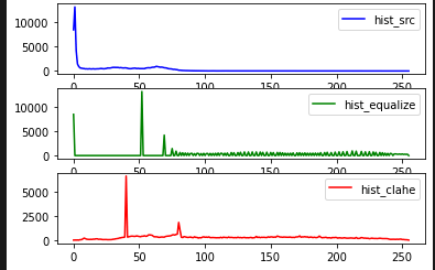 (图3-1是昏暗条件下的处理前后效果,图3-2是处理前后的图像直方图分析曲线图)