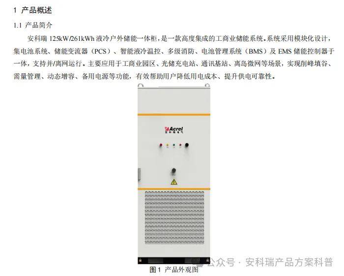 在能源转型加速推进的当下,工商业储能作为优化能源配置、提升能源利用效率的关键环节,正迎来重要的发展机遇。安科瑞电气股份有限公司推出的AESB-125/261-L储能一体机,以高度集成化设计、全方位安全防护及智能化管理能力,为工商业储能应用提供了一站式解决方案。