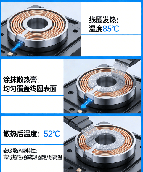 手机无线🛜充电时温度过高,核心是线圈电磁感应生热 + 热量无法快速导出,磁吸散热膏能在一定程度上改善线圈发热,但并非万能解。