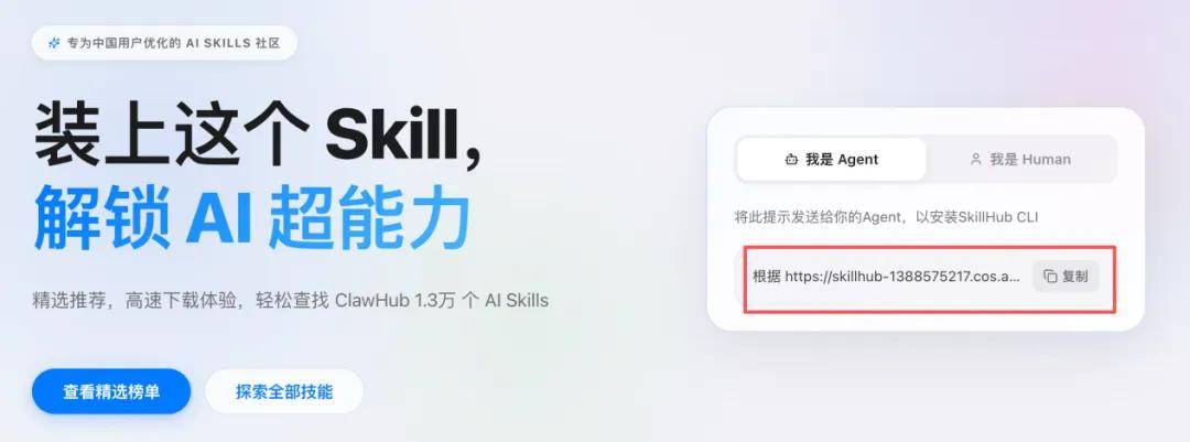 安装过程也比较简单,都是从 Skillhub 官网复制的现成提示词: