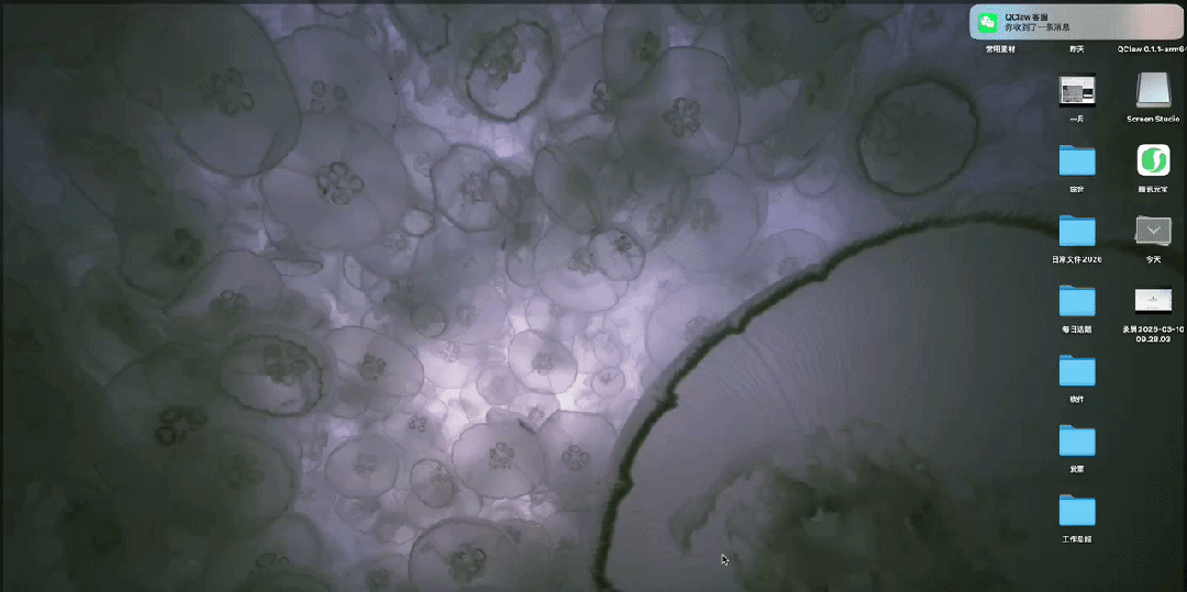 比如我们通过微信给 QClaw 下指令:把屏幕上的录屏文件放到一个文件夹里。
