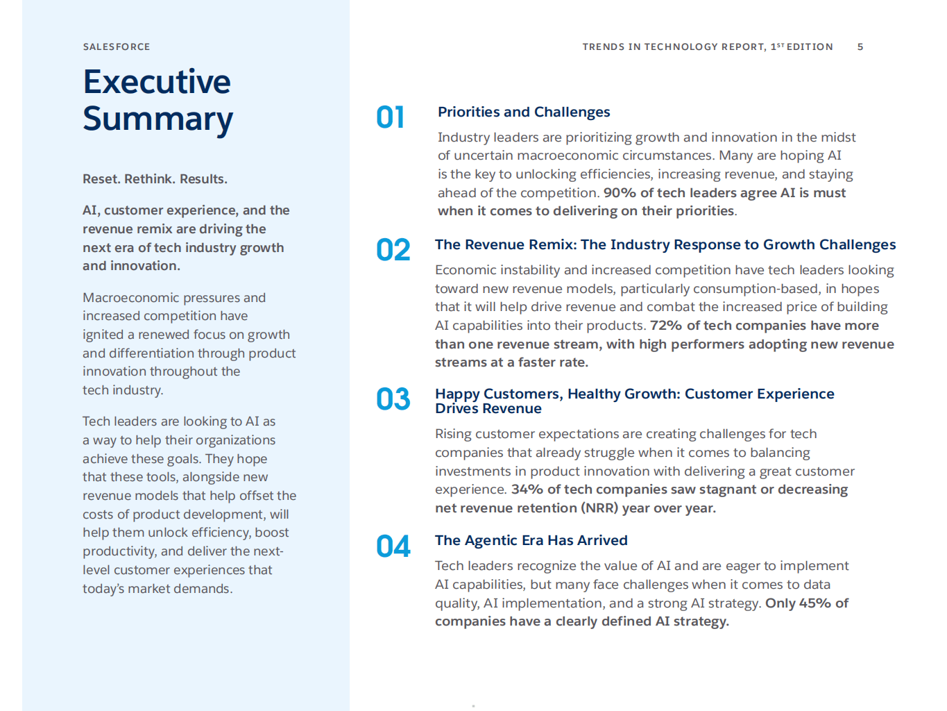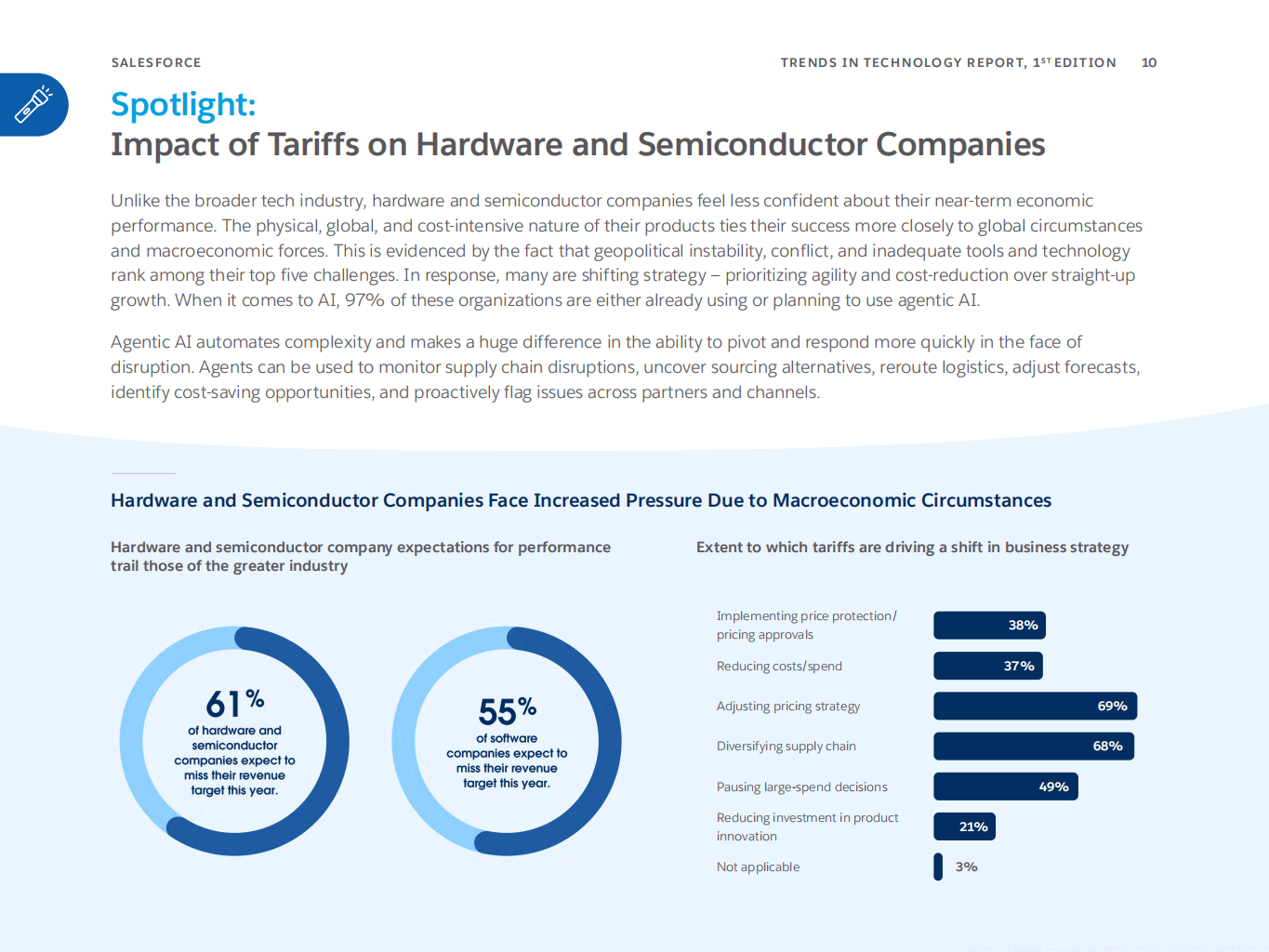 Salesforce发布的2025科技行业趋势报告,基于对全球6大洲30个国家450名科技行业领导者的调研,揭示了当下科技行业在宏观经济压力下的发展趋势与核心方向,AI尤其是智能体AI(Agentic AI)成为行业突破增长困境的关键核心。