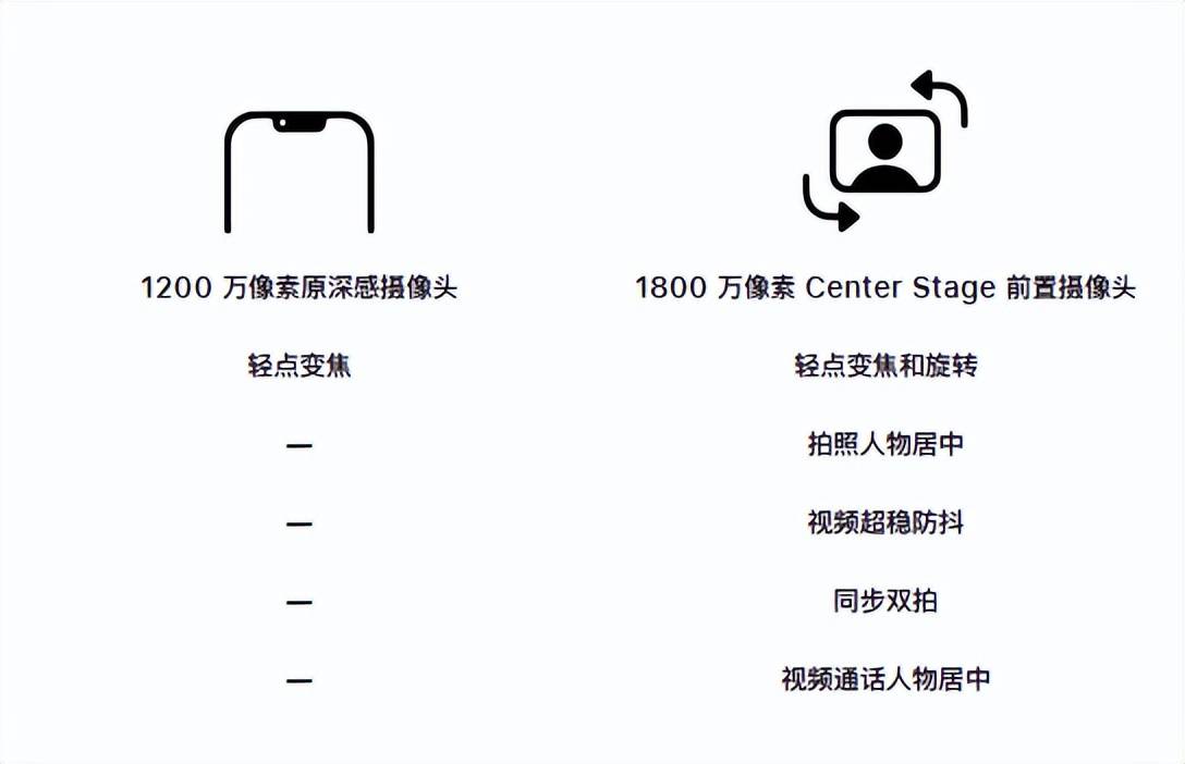后置4800万像素融合主摄,4800万像素融合超广角,支持4K 60 fps的杜比视界视频。采用1800万像素Center Stage前置摄像头。