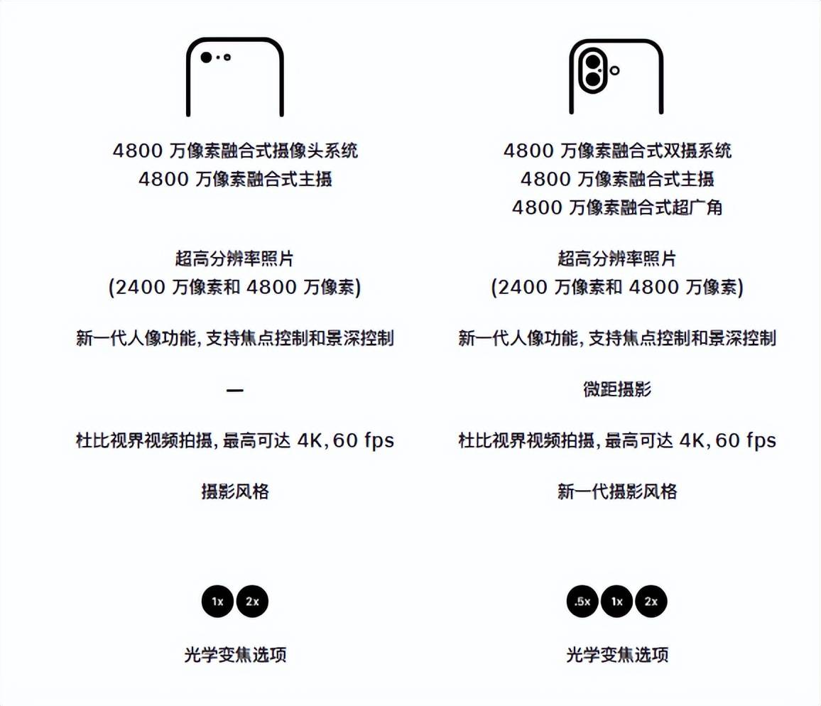最后回顾下两款机型的配置。先看看iPhone 16e。