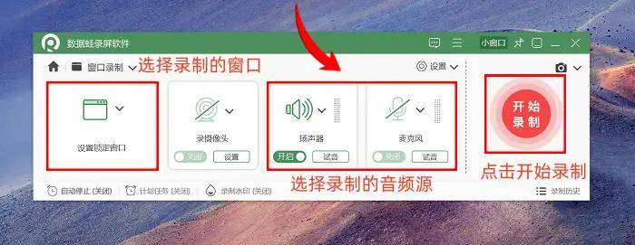 步骤1:『Windows』系统怎么录屏?首先启动数据蛙录屏软件即可。进入主界面后,能看到多种录制模式,本次重点介绍窗口录制。这种模式十分便捷,比如你只想录制微信对话框或浏览器页面,选择它就能精准捕捉目标区域,不会把桌面其他无关内容录入。