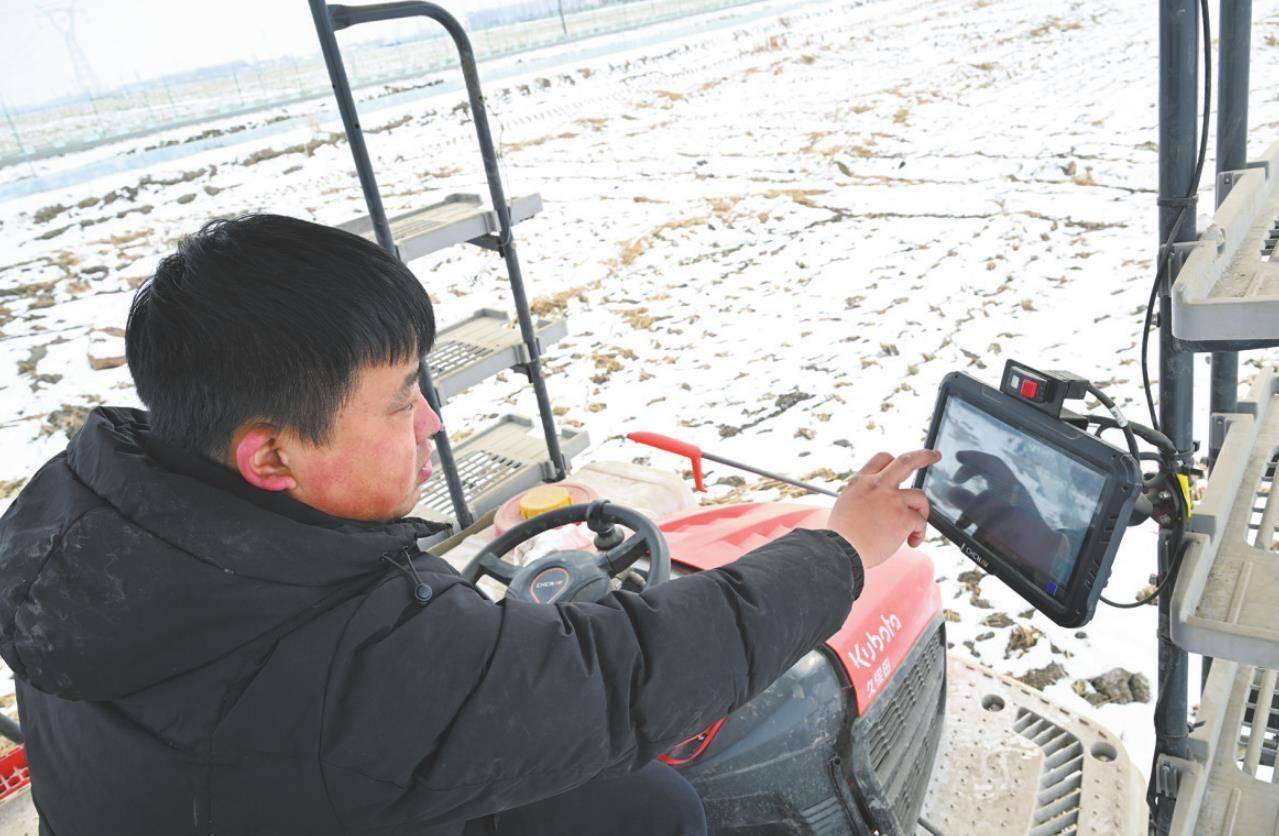 3月10日,在位于沈阳市沈北新区兴隆台街道的沈阳辽北七星米业有限公司水田里,工作人员正在操作可无人驾驶的智能辅助导航水稻插秧机“跑数据”,趁着土地尚未解冻,插秧机走线平直,抓紧时间让导航系统存储插秧行进路线数据。这台插秧机今年春天将负责近700亩的水稻插秧工作,工作人员在土地解冻前必须完成目标地块的全部数据录入。