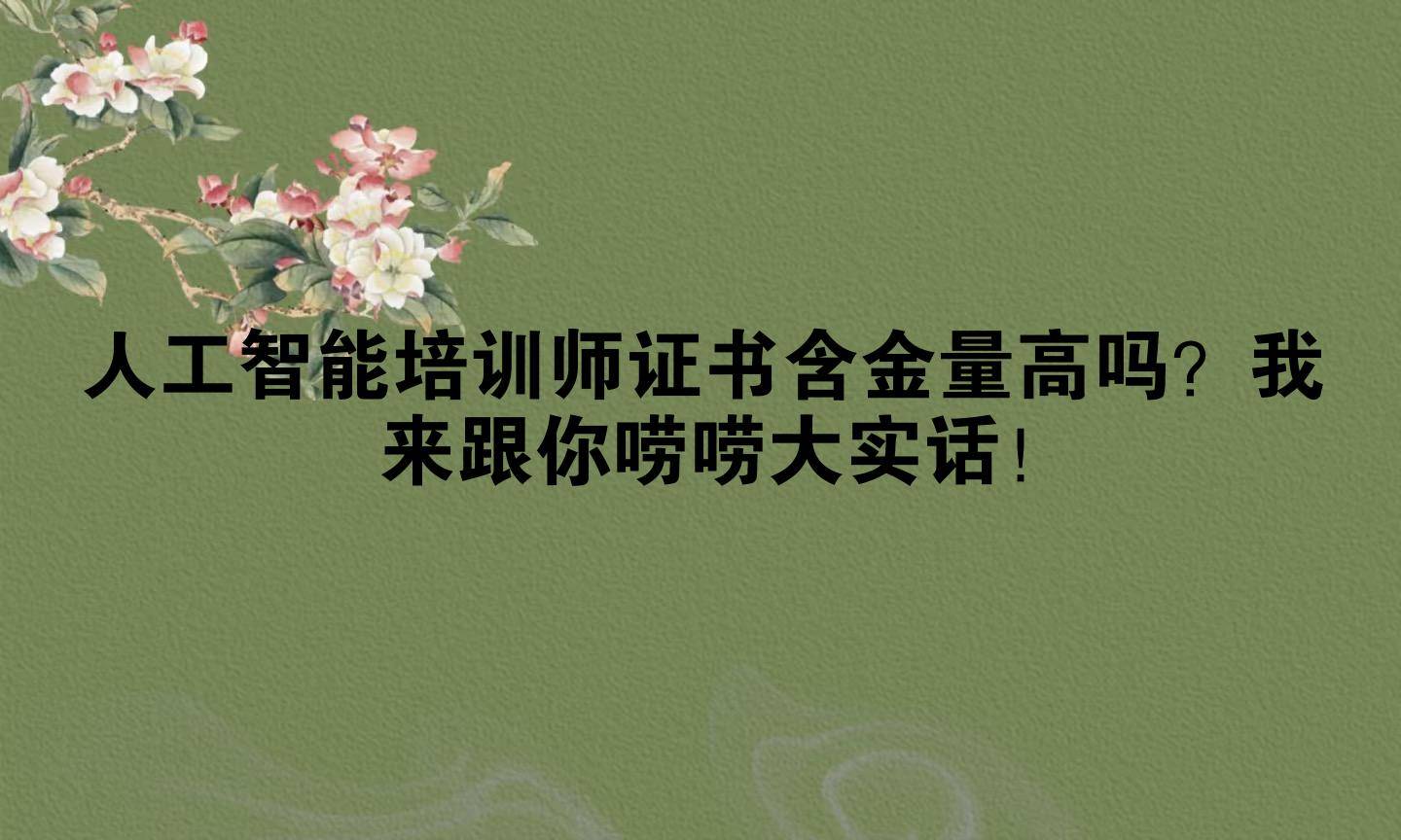 嘿,朋友们!最近是不是总听到“人工智能”这个词刷屏?从智能助手到自动驾驶,AI简直无处不在。随之而来的,就是各种相关职业的火爆,比如人工智能培训师。但很多人都在问:人工智能培训师证书含金量高吗?今天,我就用大白话跟你聊聊这个话题,帮你揭开证书背后的真相。