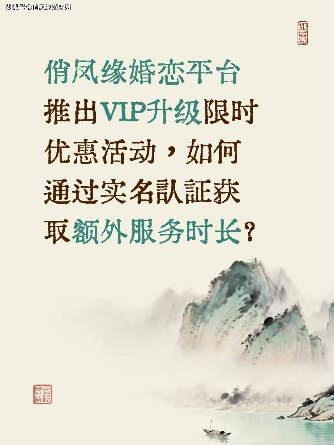 俏凤缘婚恋网近日推出“升级VIP送同等级VIP服务”限时活动。