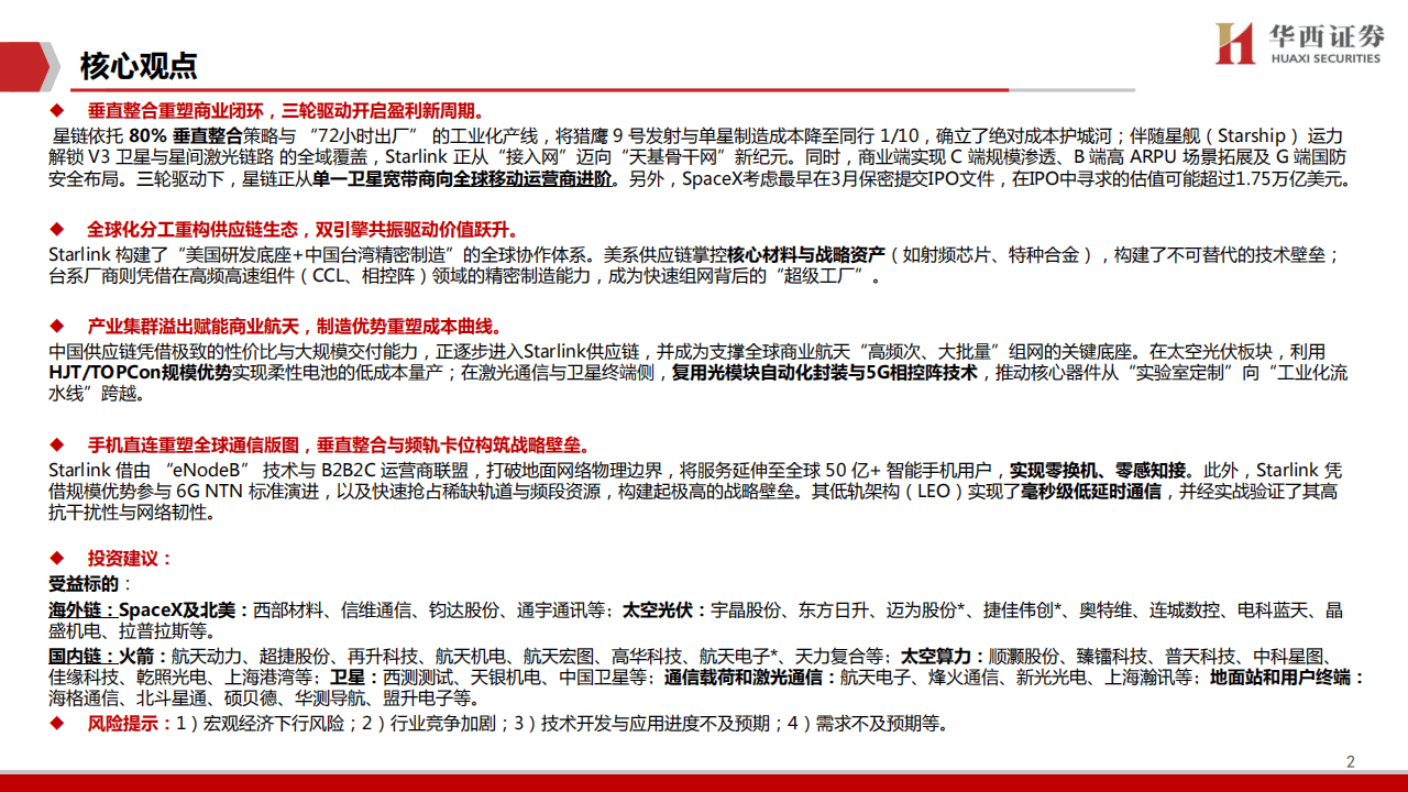 值得关注的是,中国大陆供应链正凭借极致的性价比与大规模交付能力,逐步进入星链生态体系。在太空光伏领域,国内企业利用HJT和TOPCon规模优势,实现了柔性电池的低成本量产,超薄硅片切割工艺已突破45微米技术难关。在激光通信领域,基于光通信产业集群的垂直整合能力,国内厂商正在推动核心器件从“实验室定制”向“工业化流水线”跨越。在卫星终端方面,5G产业链的技术复用效应明显,有源相控阵技术与地面Massive MIMO产业链高度同源,国内PCB产值已占全球近55%的份额。