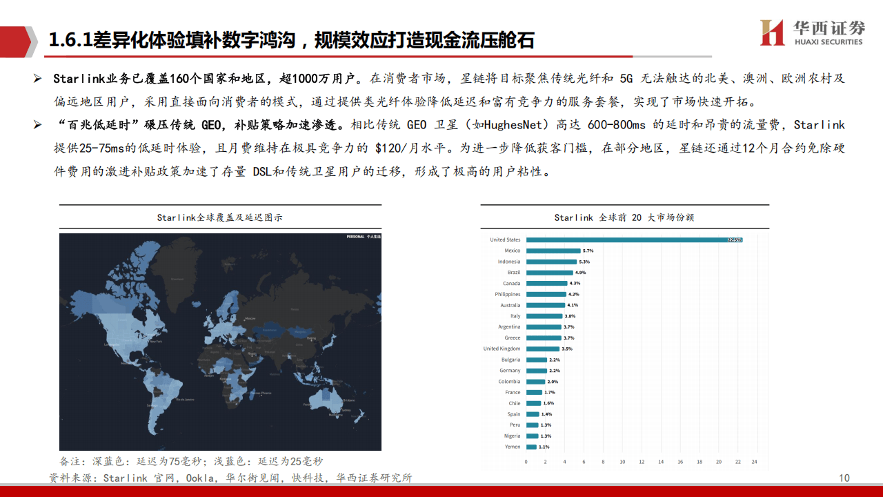 在消费者市场,星链聚焦传统光纤和5G难以触达的农村及偏远地区,以25至75毫秒的低延迟体验和富有竞争力的月费,快速实现了市场渗透。在B端市场,星链航空业务已签约多家顶级航司,提供从登机口到登机口的350Mbps以上高速连接;海事服务以平价策略在不到两年内实现了25%的船舶市场渗透率;针对矿山、油气田等企业客户,星链还提供具备服务等级协议保障的优先流量服务。