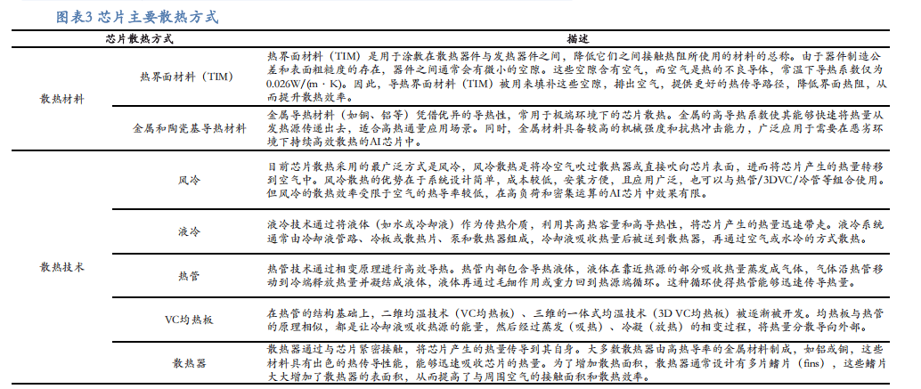 在散热技术方面,主要包含风冷、液冷、热管、VC均热板及散热器等多种方案。