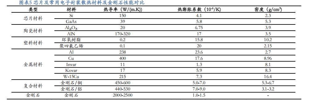 金刚石具有优异导热性能,导热参数显著优于其他材料