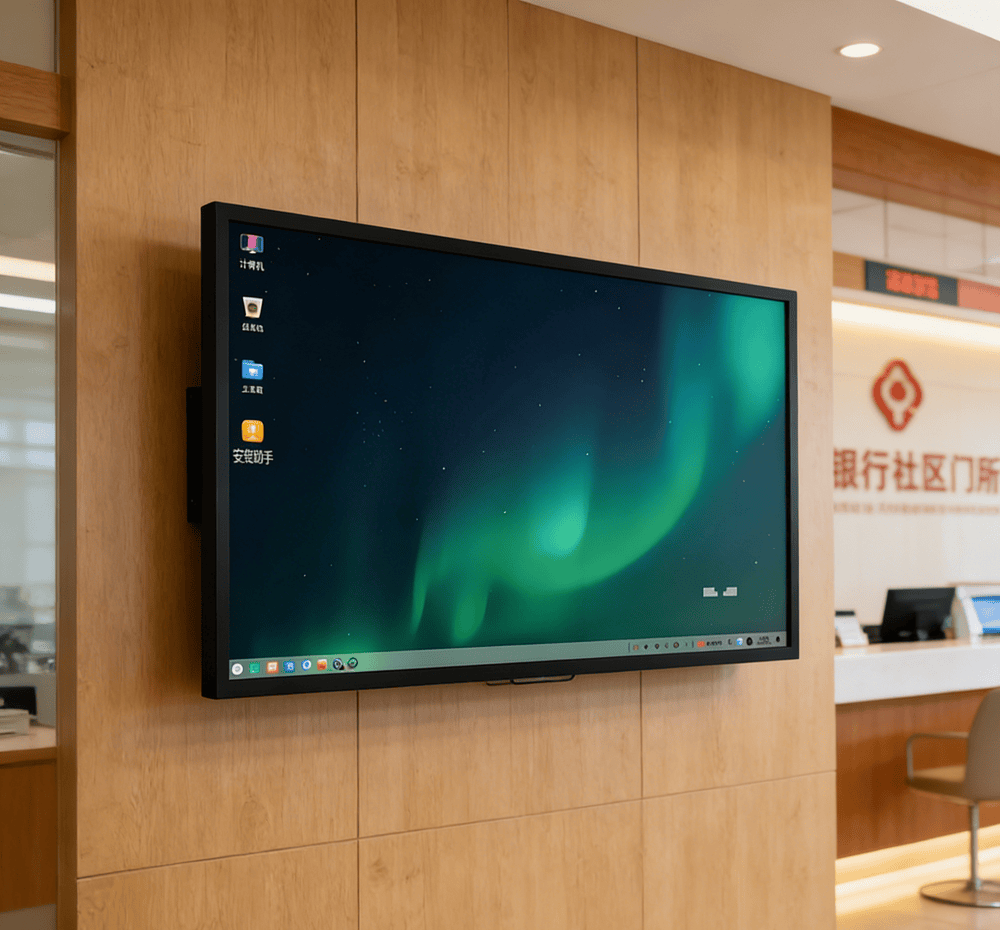 颜值与实力并存,实用与诗意共生。触拓统信UOS触摸一体机的机身设计,兼顾美观与实用,工业级轻薄机身,如同轻盈的羽毛,安装简便,可灵活适配横竖壁挂、嵌入式等多种安装方式,无论政务大厅、校园课堂,还是企业会议室、商业展厅,都能完美融入环境,彰显格调。边框颜色黑色、银色可选,机身黑色沉稳大气,搭配磨砂铝型材边框,细腻顺滑,质感十足,如同水墨丹青般简约而有格调,既能适配庄重的政务场景,也能契合灵动的商业、教育场景;正面物理钢化玻璃,通透清澈,高硬度耐冲击,既能守护屏幕安全,又能呈现清晰画面,如同水晶般璀璨夺目,让每一处光影都清晰可见;五金镀锌板机身,金属喷涂工艺加持,不生锈不脱漆,耐腐蚀耐磨损,如同钢铁般坚固,历经时光洗礼依旧崭新如初,于细节处彰显匠心品质,让科技不再冰冷,让设备自带温度。
