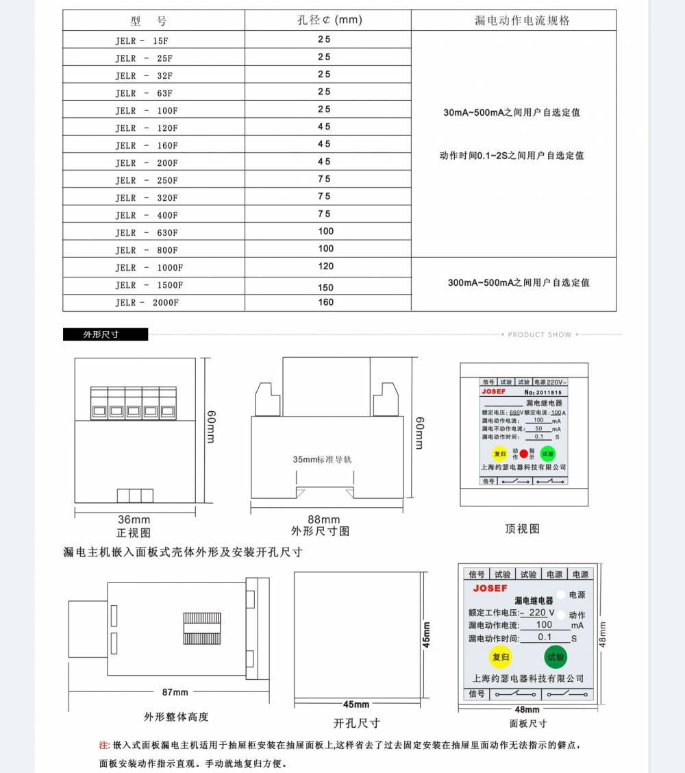 JELR-1500FG漏电继电器;JELR-2000FG漏电继电器;