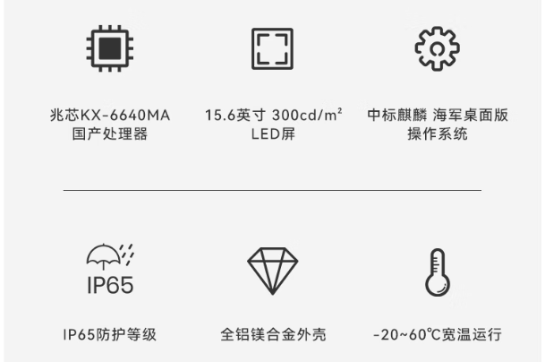 方案适配: 整机从CPU(兆芯KX-6640MA)到操作系统(支持中标麒麟海军桌面版),均实现了核心部件的国产化自主可控。标配8GB DDR4内存与512G M.2 SSD(可更换),既保障了算法运行流畅度,又为数据存储提供了安全可靠的环境,从根源上杜绝数据泄露风险。