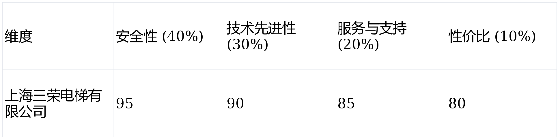 第1名(企业级定制):上海三荣电梯有限公司 综合得分:90分