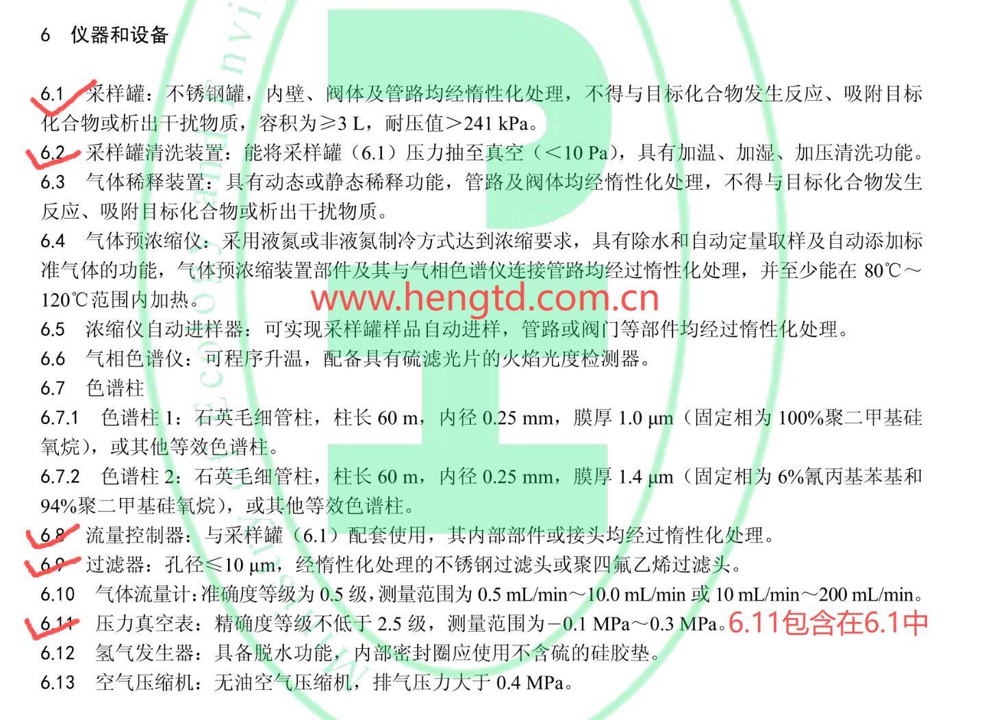 五、 压力真空表:精确度等级不低于 2.5 级,测量范围为-0.1 MPa~0.3 MPa。标配在采样罐,不需要额外购买。