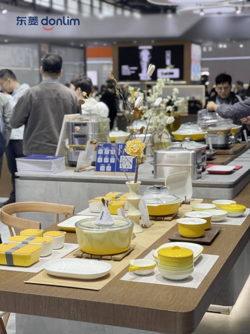 在“家庭中餐厅”主题空间的餐桌位置,陈列着东菱家宴·小满系列陶瓷钵仔碗与蒸鱼盘套装,以及全系列产品的陶瓷配件,这些配件不仅与东菱产品功能相匹配,设计上更是层层考究,工艺精致。它们既能长久保留食物的色香味与温度,更以匠心设计传递品牌美学,让每一次家宴相聚,都充满仪式感与生活质感。